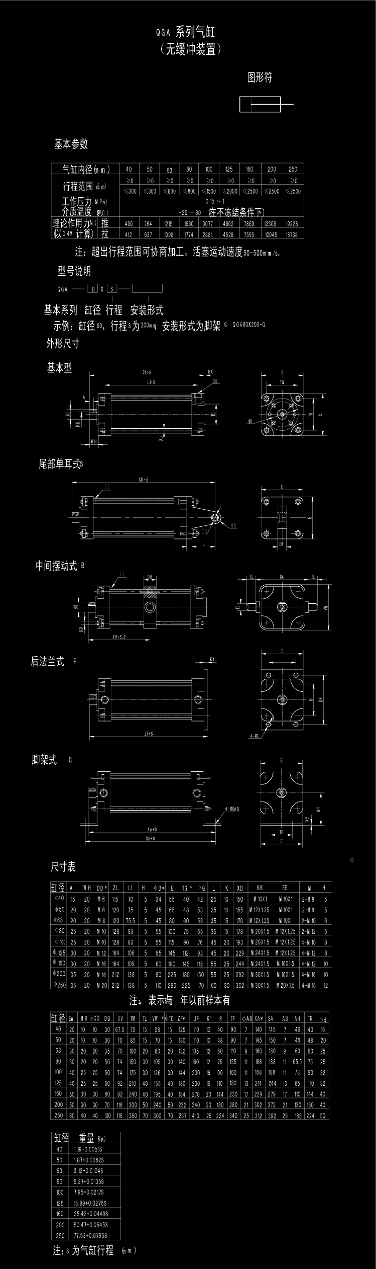 QGA系列气缸(无缓冲装置)