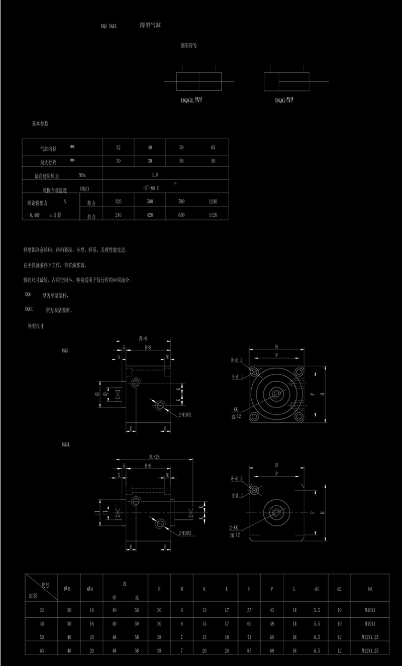 DQG、DQGL薄型气缸