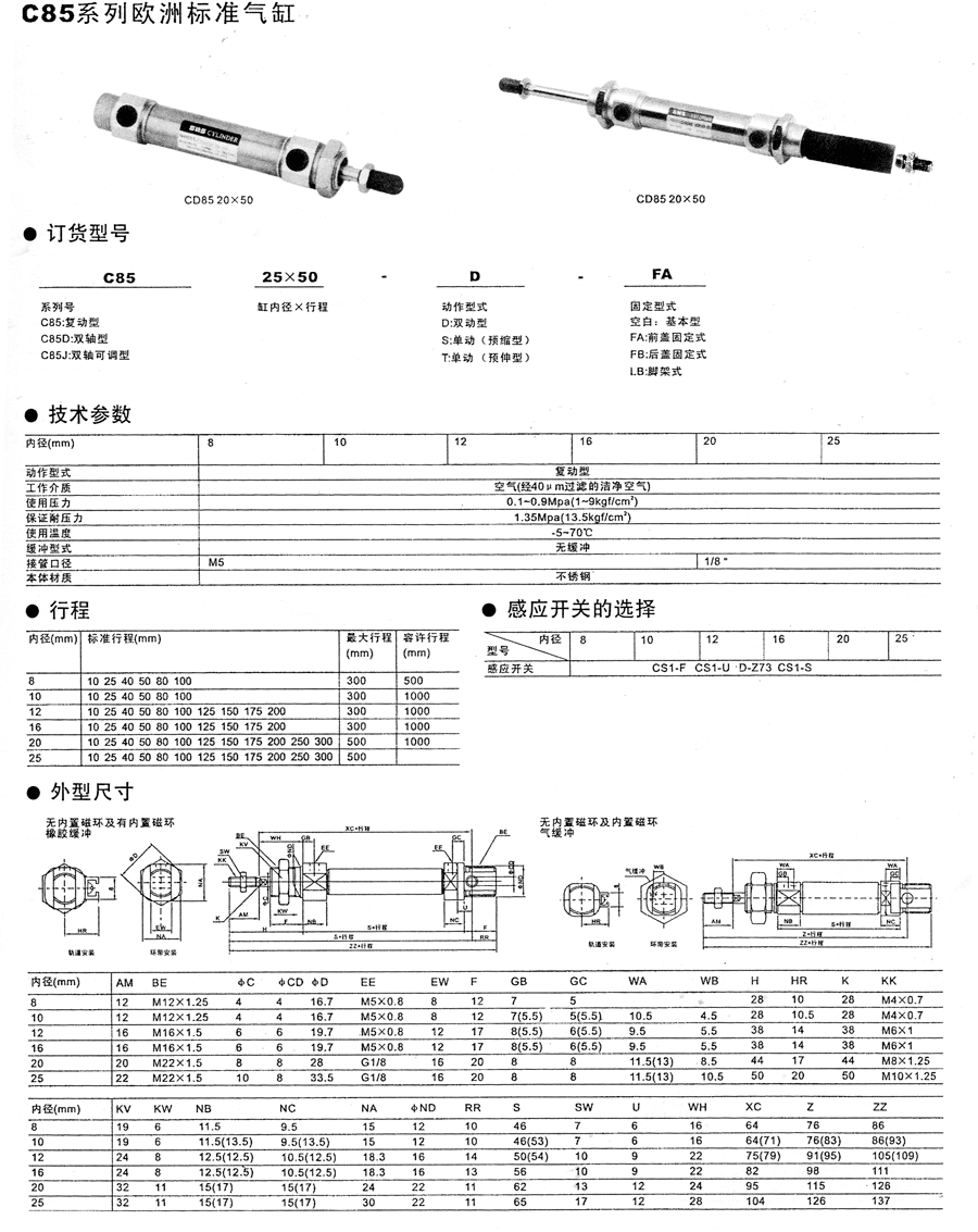 C85系列欧洲标准气缸