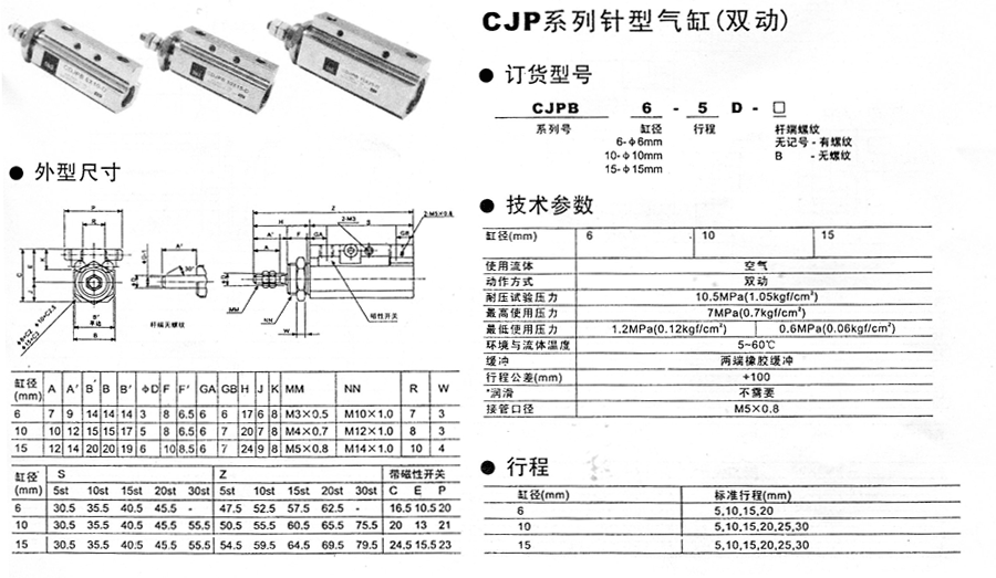 CJP系列针型气缸(单动)