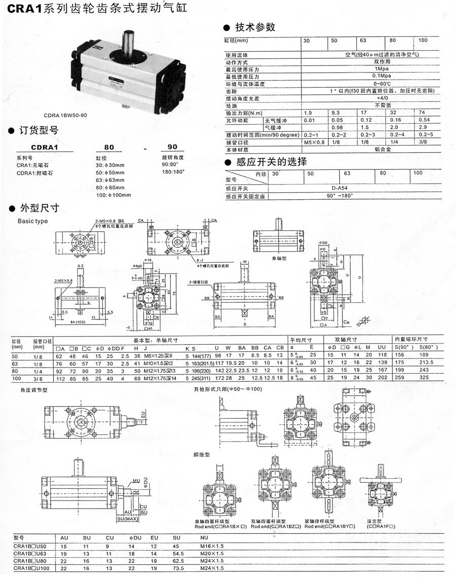 CRA1系列齿轮齿条式摆动气缸
