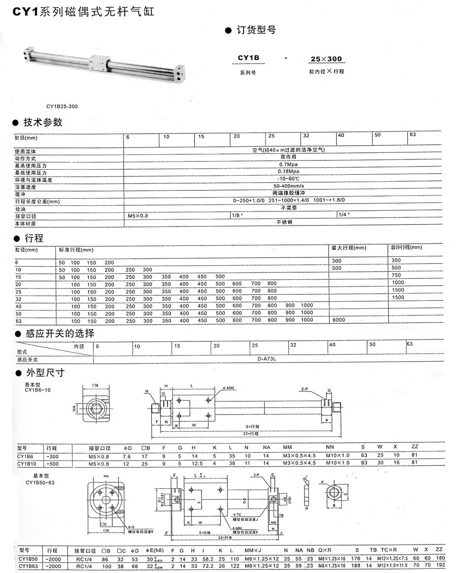 CY1系列磁偶式无杆气缸