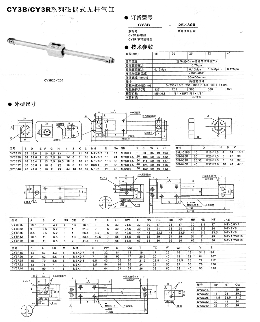 CY3B/CY3R系列磁偶式无杆气缸