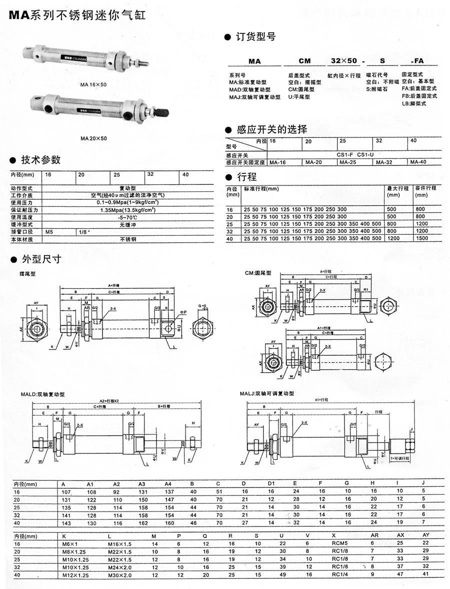 MA系列不锈钢迷你气缸